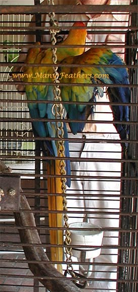 Camelot Macaws Check out this gorgeous male Camelot macaw. After visiting with this bird, and 6 of his various brothers and sisters near San Diego, the first generation camelot pairing theory has been blown right out of the water. His mother is the Scarlet and his father is the Catalina in the pair, and this offspring came out just awesome! |